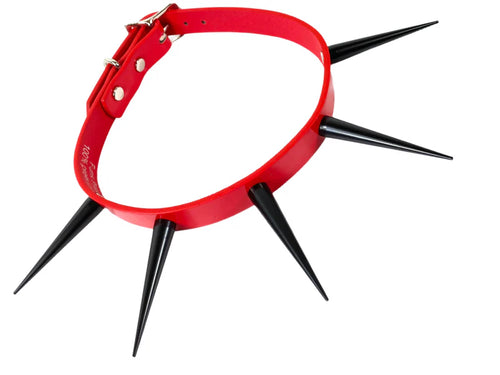 Red Vegan Leather Collar w/ Multi Sized Spikes