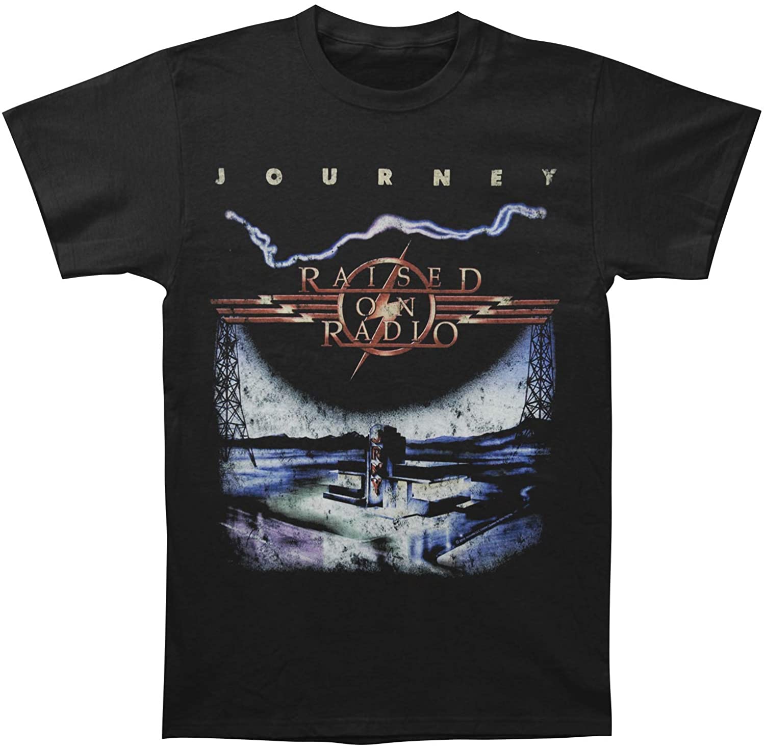 Black t-shirt with Journey On Radio full colored design printed on the front.