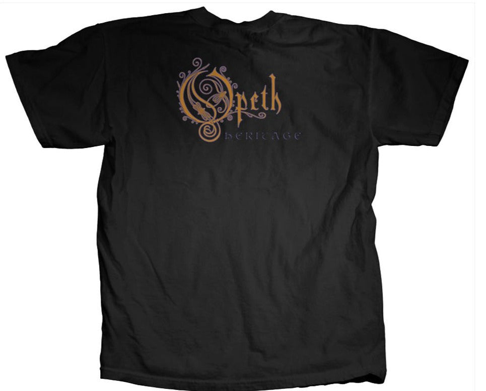 Black t-shirt with Opeth Faces full colored design printed on the front and back.