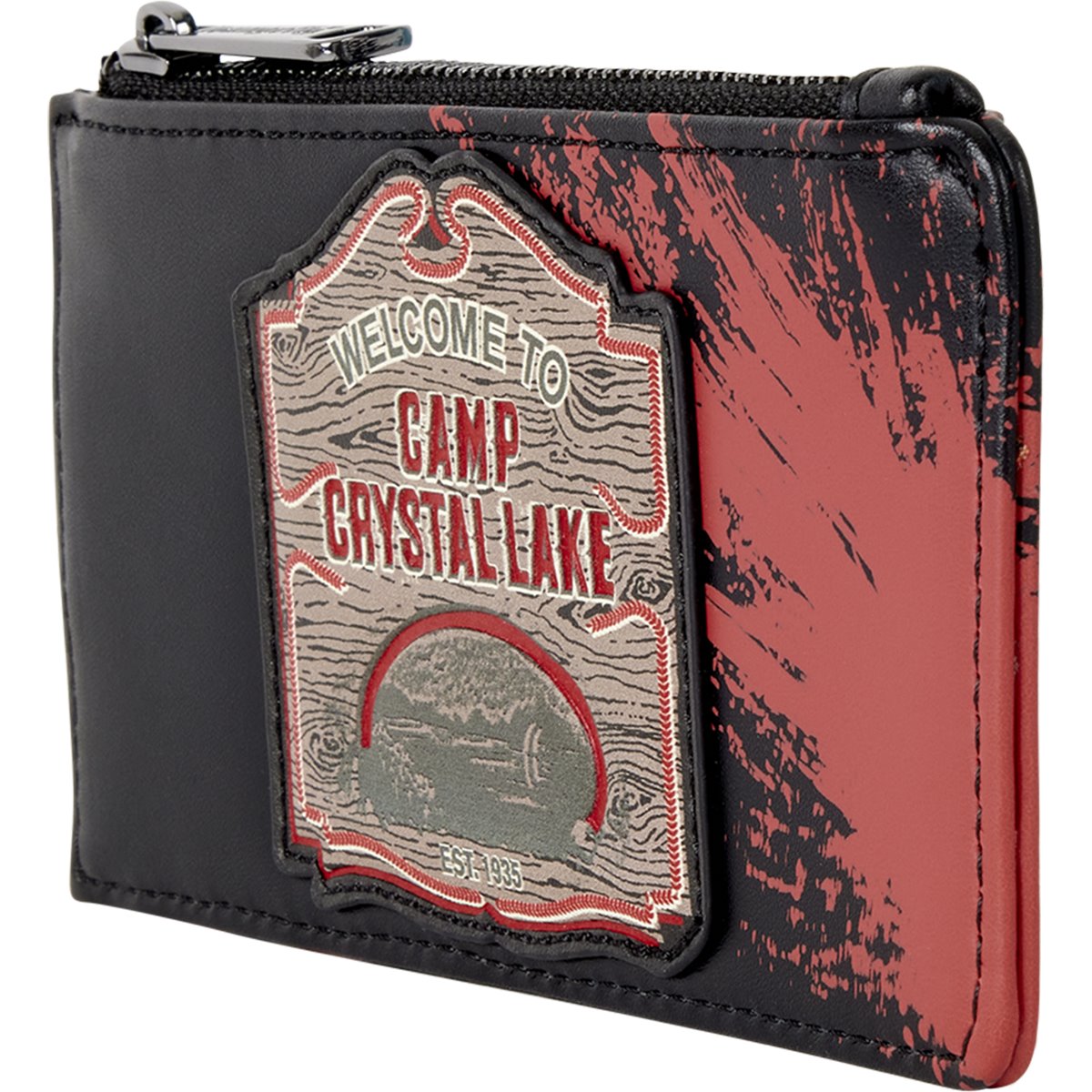 Zip around wallet featuring multiple cards, ID slots, an applique, debossed and printed details with coordinating interior lining.