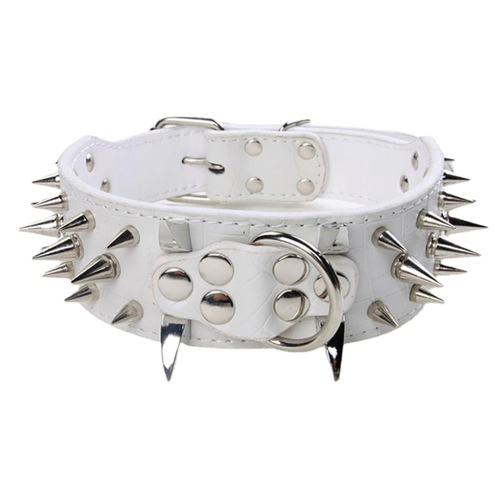 White Leather Collar w/ Silver Spikes and D Ring Detail